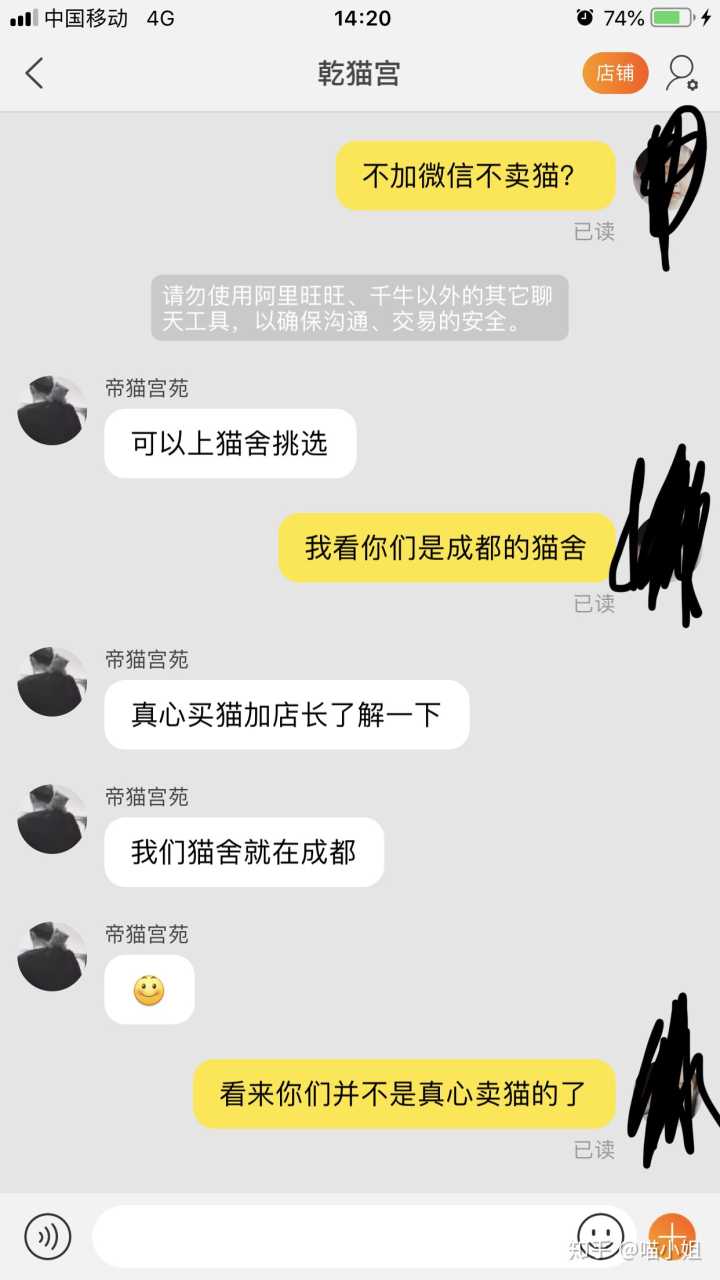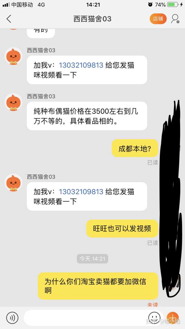 完全不懂养猫,也不太了解猫的我,第一时间就决定去淘宝买一只,感觉淘宝售后还挺靠谱的,就这样我问了淘宝好几家店,全部是要加微信聊,我也没起疑心,贵重的活物很少有直接走淘宝的,当时因为是临时起意我大概12点加了六七个微信,价格最便宜的是1200+运费240