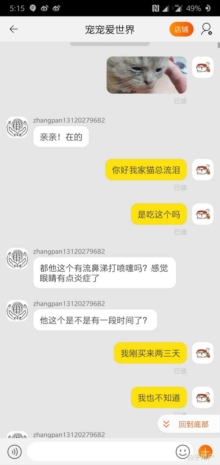 收到猫的时候和卖家发的录像也差不多吧,就是有些泪痕,是个靠谱卖家,还给我送了冻干和一些备用药,还送了好几斤的猫粮,有泪痕我百度了一下说是猫粮太咸,我买了皇家奶糕,又买了个羊奶粉给他们补补营养,就这样由于我完全不会养猫,没有养猫的基本常识,接猫的那天下雨着凉我没有放在心上,猫开始出现流泪,流鼻涕,拉稀,我去淘宝买赖氨酸,真的是天意吧,我遇到了个超级无敌巨无霸好的淘宝卖家,我不说了,直接上聊天记录