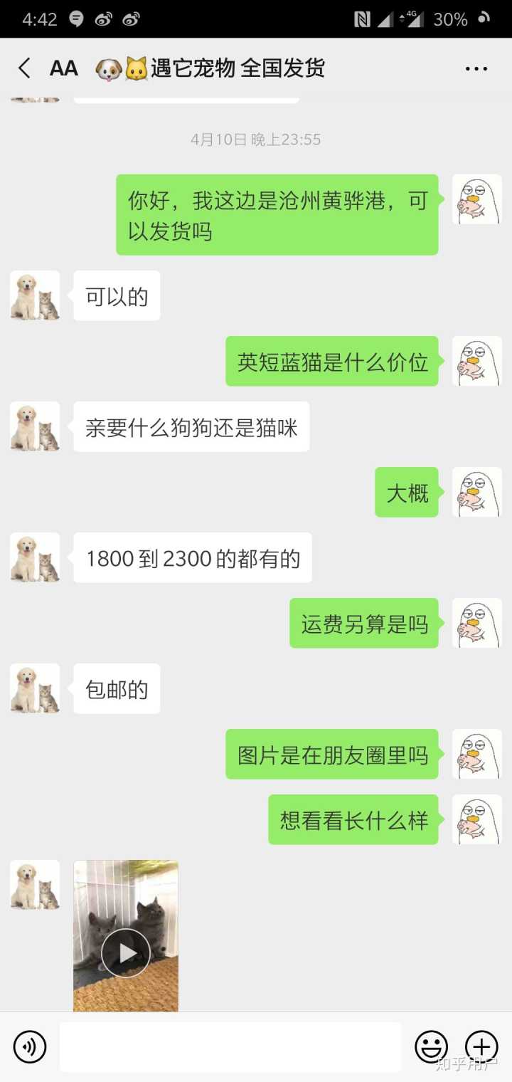 后来我就想想去闲鱼看看有没有同城的吧,正好看到一家狗场卖1300的蓝猫崽子,我都已经交完钱订了,卖家说狗太小刚生几天要等一个月才能给我,这给我急的啊,一个月我可怎么等啊,找了个借口就退掉了,因为是闲鱼交易的直接就给我退了,他开始让我微信给他200定金我没答应,我就直接说微信太危险了没保障,卖家也没为难我,其实这个卖家挺靠谱的,就是等猫太久了!