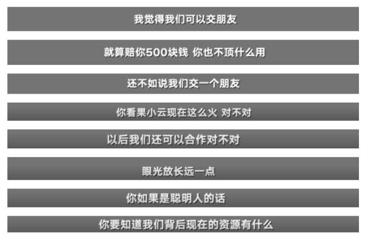 你要知道现在我背后的资源有什么,我跟你说,如果你是聪明人的话,你不会因为这500块钱,成为我们的敌人。
