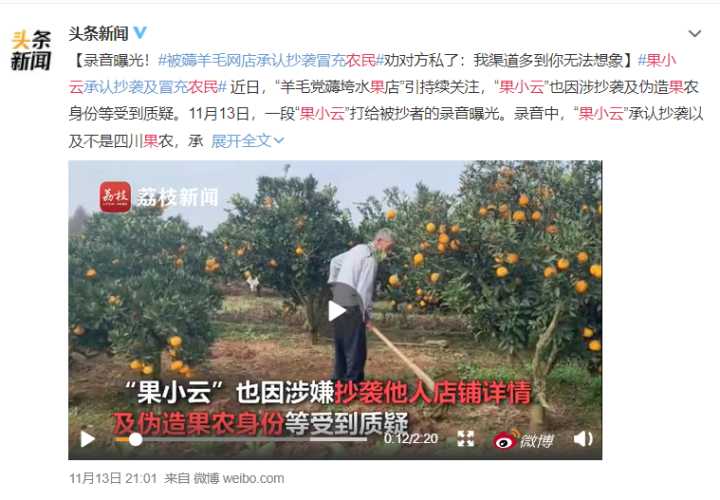 于是乎,一则把羊毛薅得惊动整个网络、逼得“农民”下跪的“果小云事件”,就此诞生。