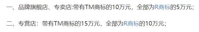 (一)天猫旗舰店、专卖店:持商标注册受理通知书的淘宝店铺保证金为人民币10万元,持注册商标的店铺保证金为人民币5万元;