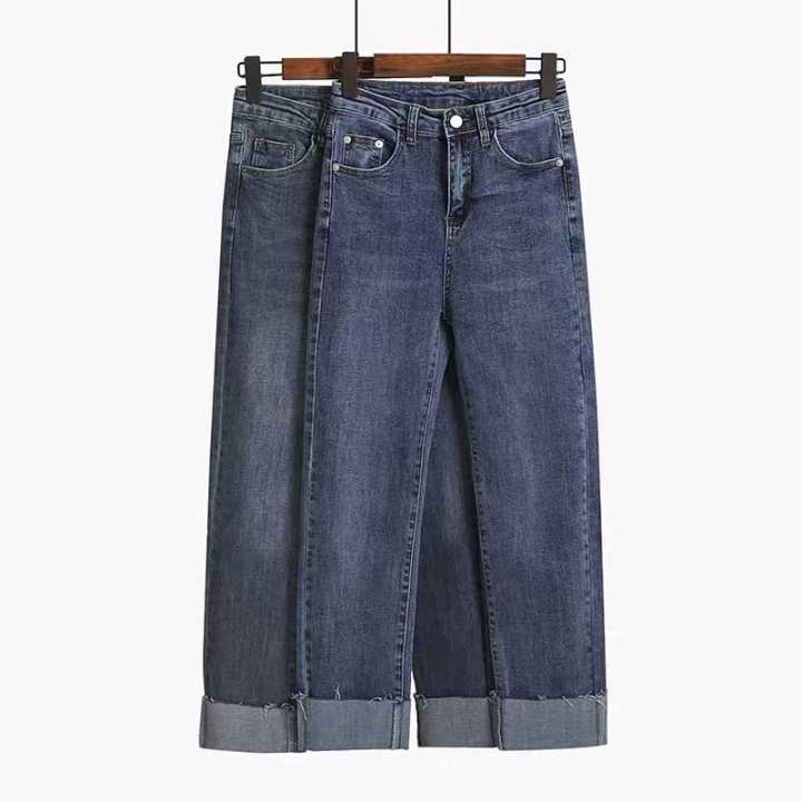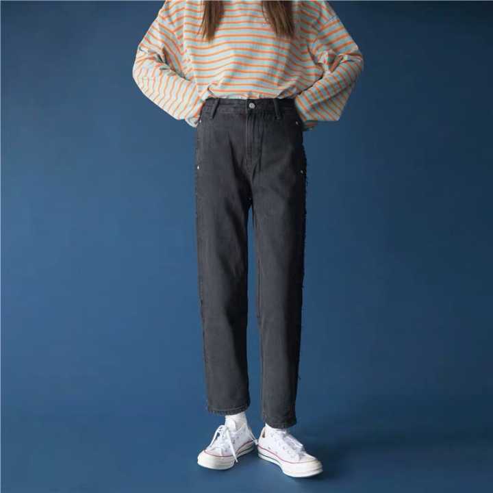 【RAINY自制 牛仔裤女直筒宽松复古老爹裤2019新款阔腿百搭深色长裤】