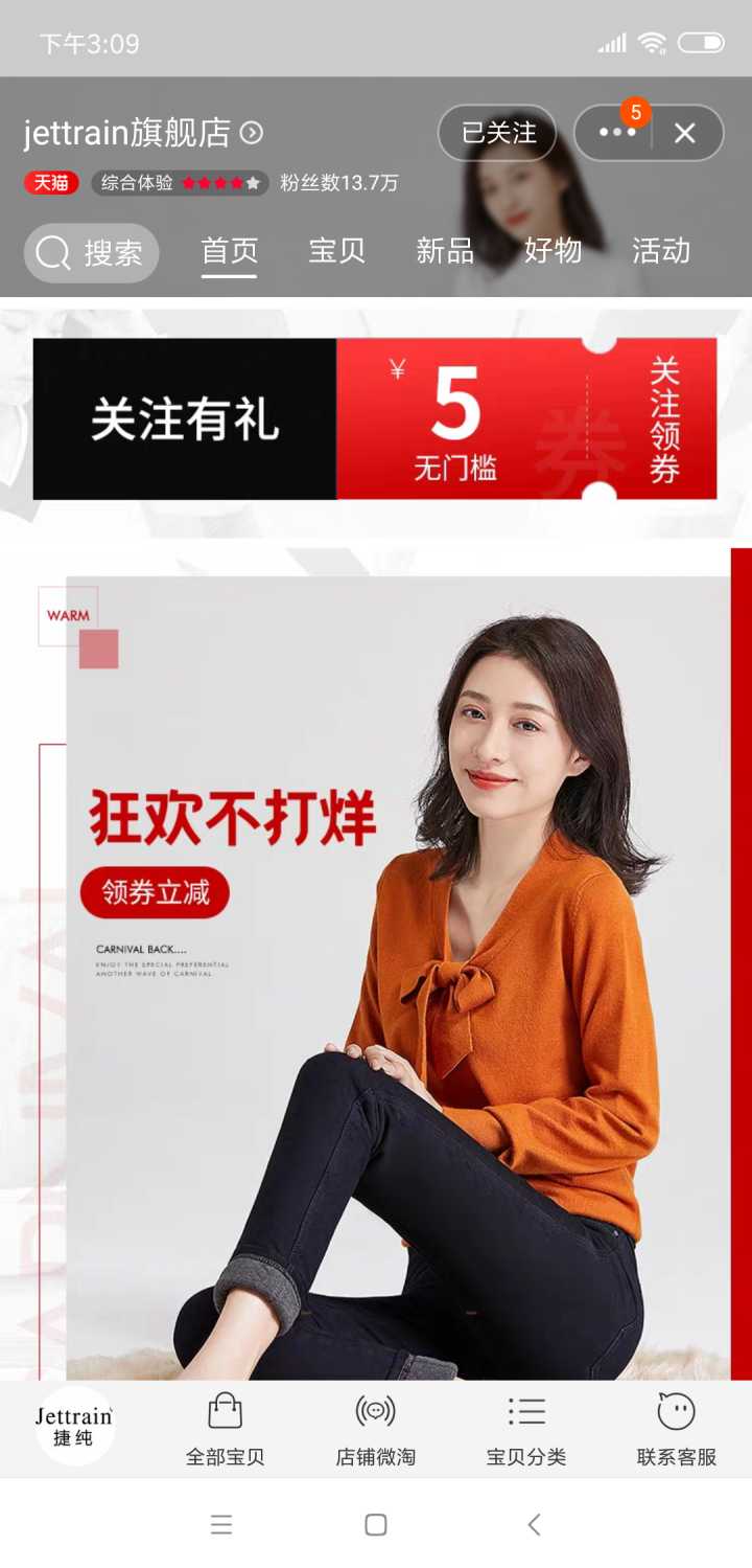 买过这家的毛衣,开始关注这家店,然后入过一条基础款的牛仔裤,摸起来挺舒服的,穿着不嘞可以蹲着,弹性比较大,经常做活动款式也挺多种