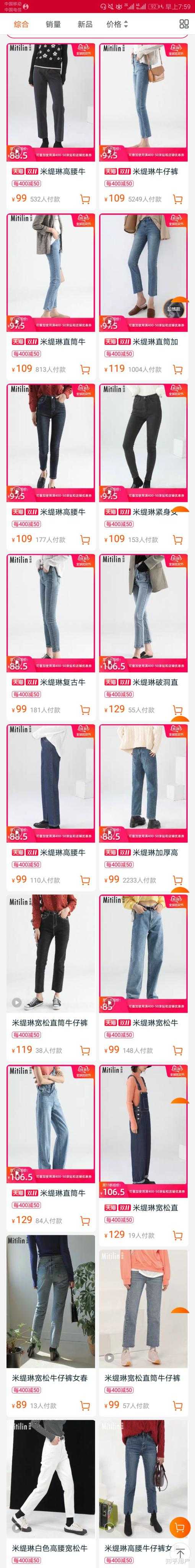 这家店算是学生中的网红店铺了,裤子以学生范儿的牛仔裤为主,虽然便宜,但是人家的用料很好,不是那种硬邦邦的牛仔布,而是比较有弹性的布料,所以贴合性比较好,也不怎么挑人。