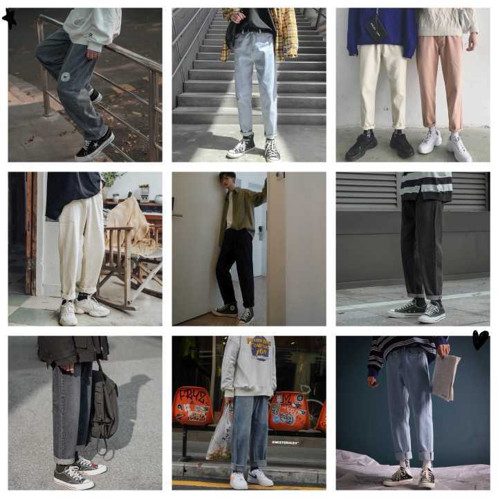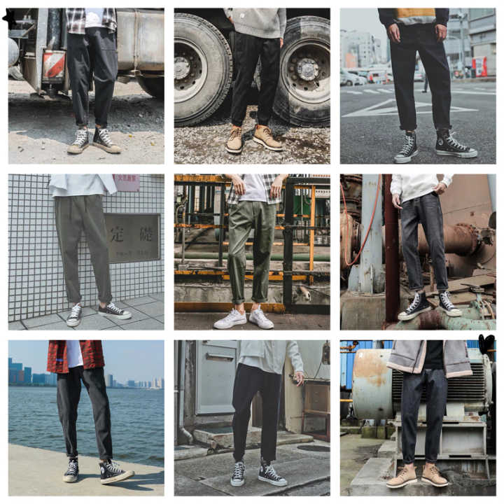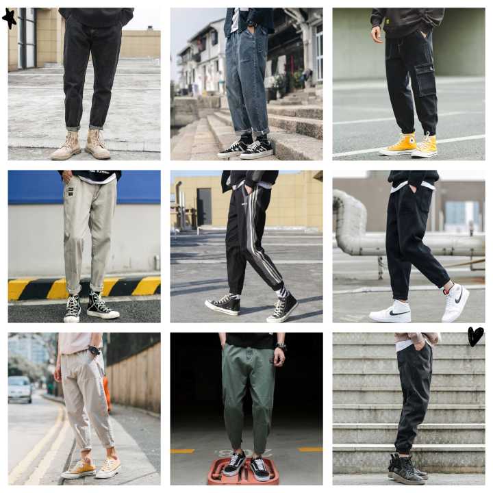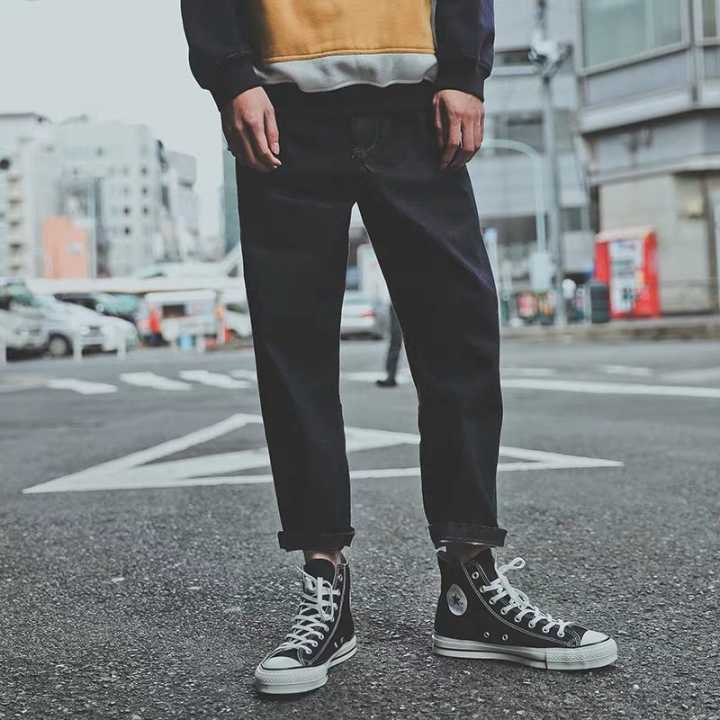 不太高的男生不要选裤腿太大的裤子,要挑选稍微修身一点的版型,显高又显瘦。选工装裤的时候,一定要九分束脚,不要选宽大的直筒裤和吊裆裤,不然腿更短。