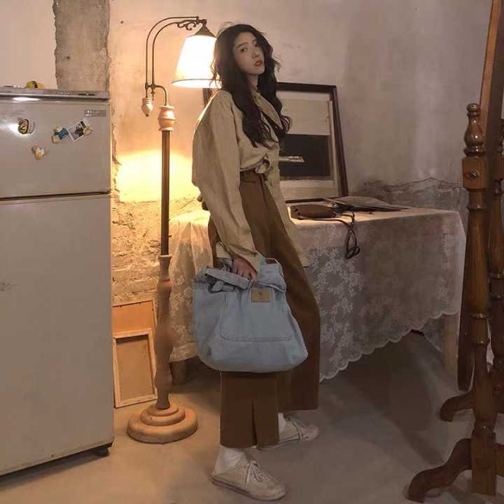 虽然是主打复古牛仔裤的店铺,但是她家阔腿裤的版型真的值得一提,上身就是纸片人即视感,而且搭配上也可以参考复古风穿搭,我爱了!