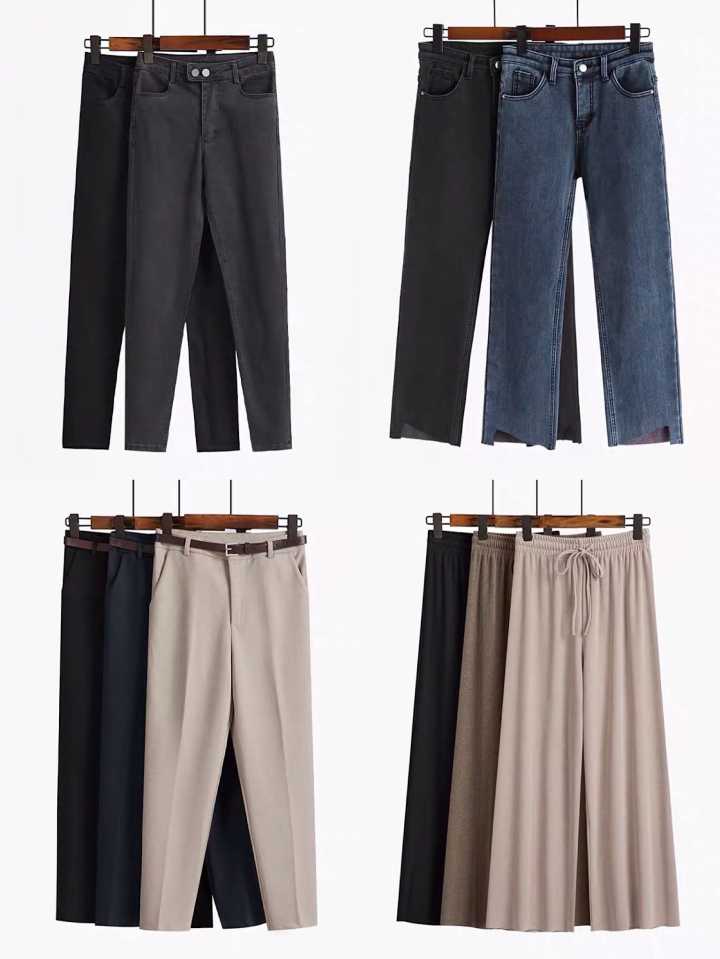这家的款式基本都是阔腿裤,版型很好,无论是高腰阔腿裤还是宽松阔腿裤都很值得一入,而且冬天里面穿几件秋裤都看不出来,质量很ok了!