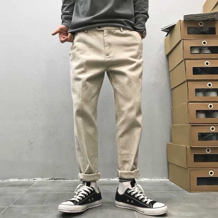 个人一直觉得工装裤虽然酷酷的,但是有一丢丢不太适合个子比较矮小的男生,那么这种休闲小西裤完全可以弥补这个问题,一百多一条,搭配皮鞋商务休闲风,搭配小白鞋、帆布鞋顿时变成校园萌新。