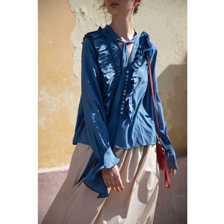 蓝色的衬衫,朋友觉得不日常不好看,我恰好相反,觉得很特别啊,衬衫为啥一定要这么常规,为啥要穿的像个卖保险的一样(没有说卖保险不好的意思)。款式很吸睛好不好。