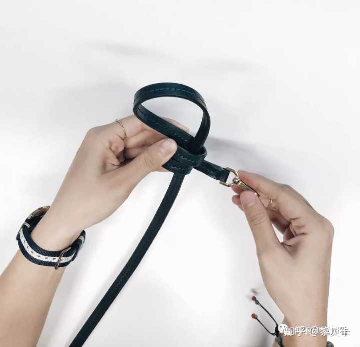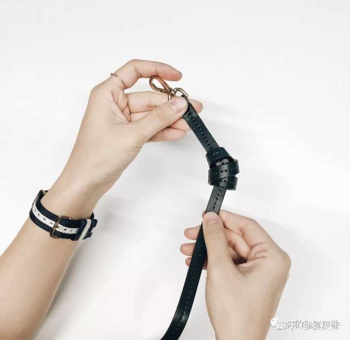 不舍得在肩带上打孔的,还有一种不需要借助“外力”的方法——轻松地打个结就能搞定!