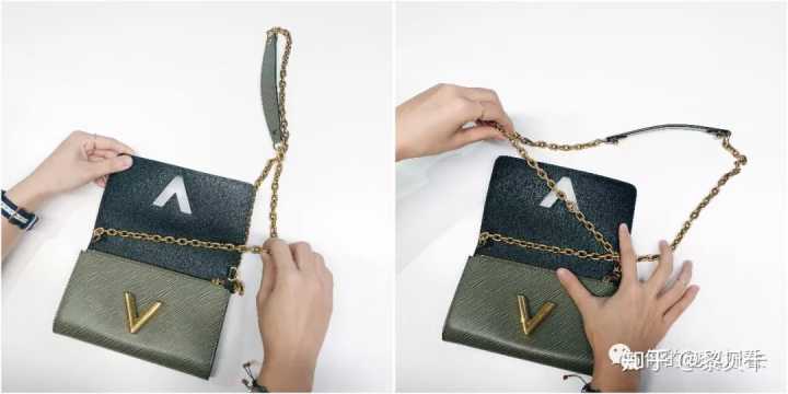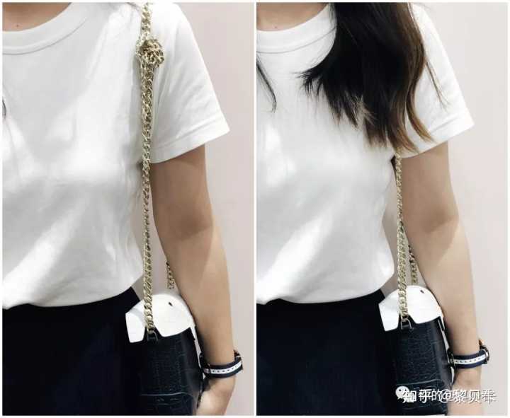 如果觉得上面两种处理链条包肩带的方式太过简单粗暴,还有一种更精~致~的小技巧可以推荐给大家。