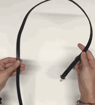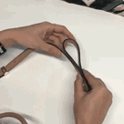 ⭐️ Step 1:首先摘下肩带,选择没有孔口的一端,交叉折叠。