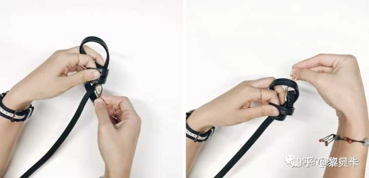 ⭐️ Step 3:然后把金属扣穿过绕好的圈里,将肩带拉紧就OK啦!