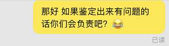 结果我鉴定出来是假货了,她微信又说毒的鉴定结果有问题,她们内行人都不相信毒的。