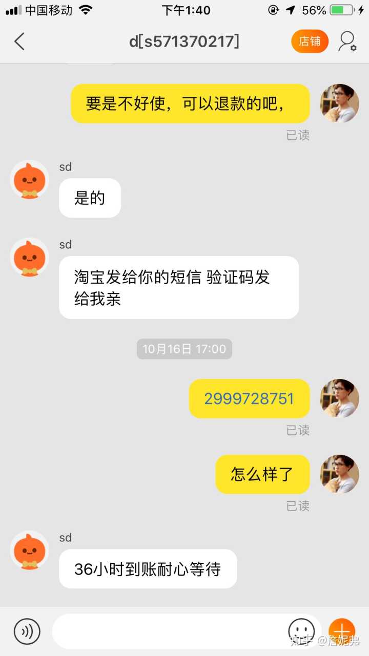 36小时,算了一下是一天半,又去看了一下短信,哎呀妈,验证码居然是淘宝发的确认收货的验证码,卖家那边已经核销成功确认收货了!