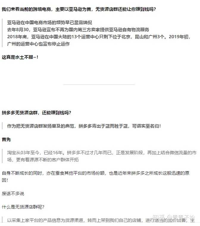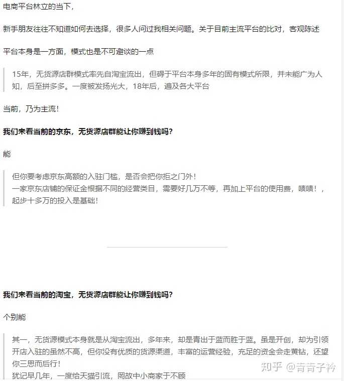 青青子衿:无货源模式是什么?开网店是做淘宝,京东,亚马逊,还是拼多多?