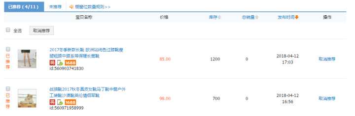 要给上架中的宝贝进行橱窗推荐,尤其下离下架还有一个小时的宝贝。