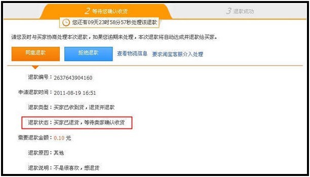 注意:若退款状态为“卖家不同意协议,等待买家修改”,需要先由买家修改退款协议,将退款状态变更为“退款协议等待卖家确认中”才有“同意退款”的按钮。