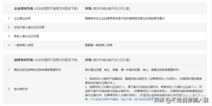 4. 如果有资质就自己入驻。需要有公司,有R标,具备一般纳税人资质。最好要有实际经营,比如说有工厂或者说线上有企业店,这样通过的可能性就高很多,如果没有资质的话,买一个店铺是最直接的
