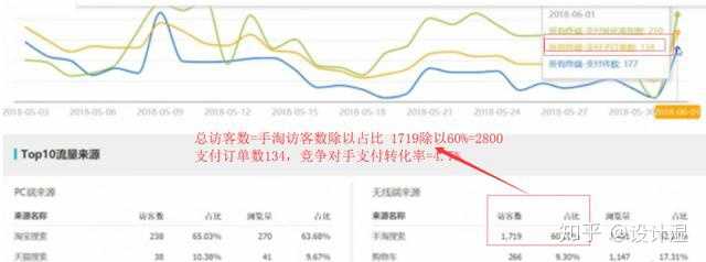 案例实操转化率计算:手淘搜索访客是1719 ,占比60%,总访客=手淘访客除以占比=2800.
