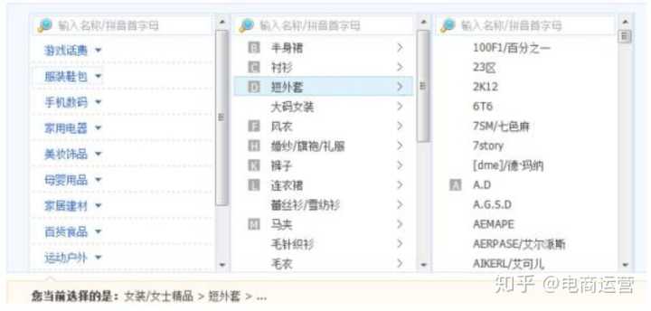 小伙伴们可以根据商品的属性,一级级选择下去,直到最后一级类目为止。