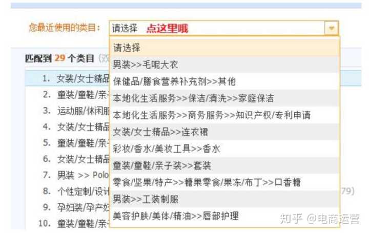 如果之前已经发布过相同类目的商品,再次发布的时候,可直接点击“您最近使用的类目“选择相应的类目即可。在这里会展示最近发布过的10个类目哦。