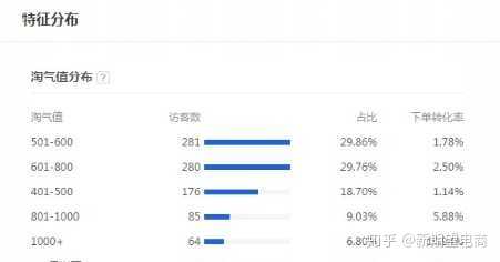 以及从生意参谋-流量-访客分析-访客分布,可以了解到人群的淘气值(淘气值作为消费能力的重要指标,不只看买家的购买力,以及买家购买后的评价,分享,以及诚信度情况)分布数据,并判断进店人群的购买力和质量,淘气值越高那么说明买家质量越好。