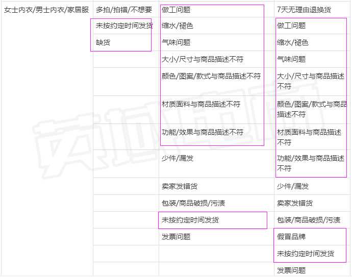 对于内衣类目来说,以下红框所标退款理由是对店铺DSR评分有严重影响的