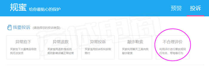 如果这个退款判定无效,买家最后给个差评怎么办,还不是卖家吃亏。不用担心,我们可以再进入规蜜,点击投诉-不合理评价进行投诉。