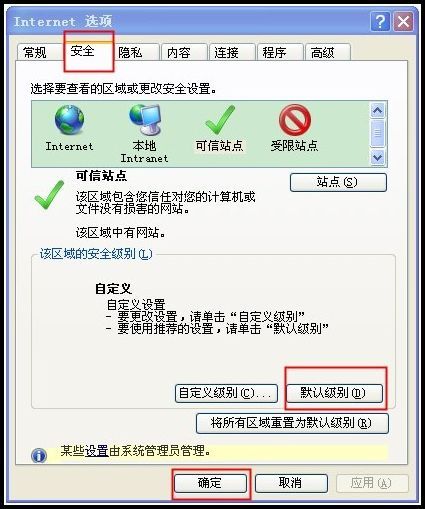完成以上操作后请关闭所有网页重新打开。您也可以将安全级别降低,并对自己电脑的防火墙进行重新设置。