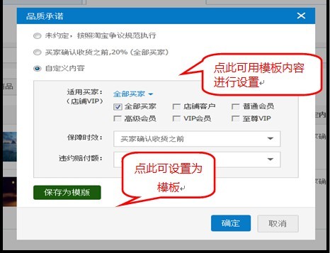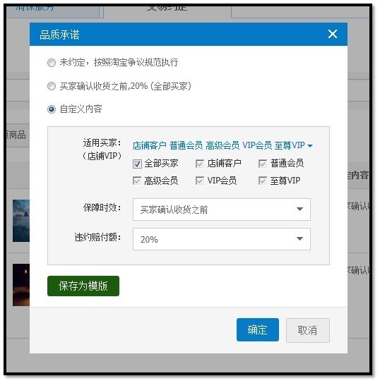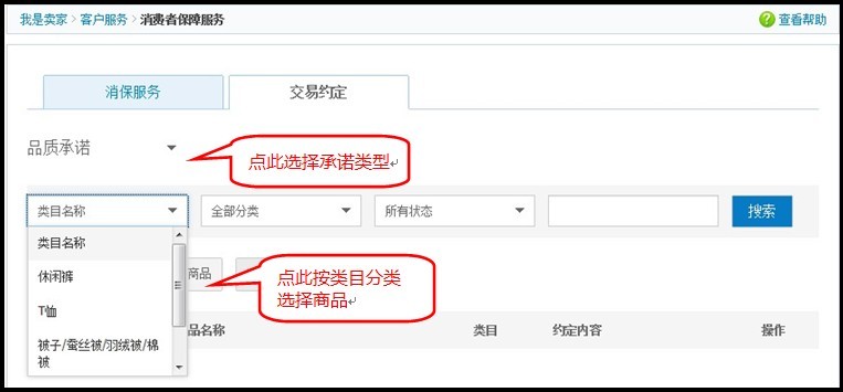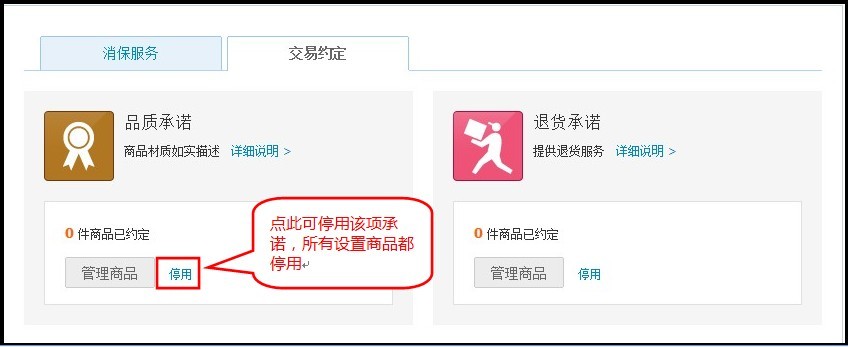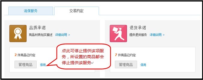 1、符合条件的卖家可进入“卖家中心”通过“消费者保障服务”-“交易约定”管理模块进行设置