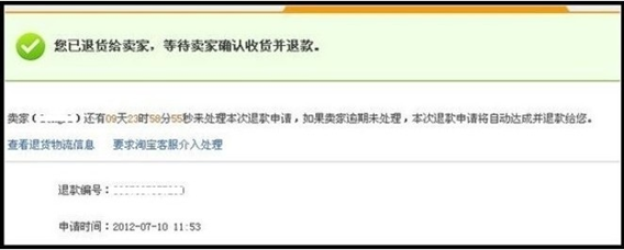 确认信息无误后,点击【提交退货信息】的按钮,退货信息就提交成功了,卖家后续会有10天的时间来进行确认,逾期卖家没有处理,系统也会自动退款给买家。