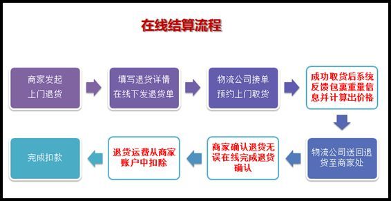商家上门退货服务中的退货运费的支付方式请查看下图在线结算流程: