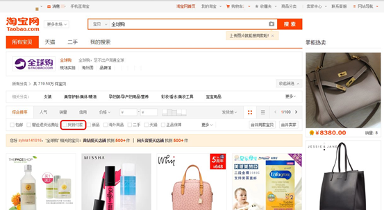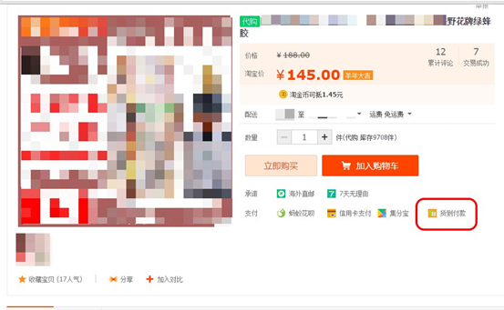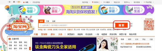 2、登陆淘宝网首页,找到搜索框,点击 【搜索】,进入到下一页面,找到图中的【货到付款】。点击后面的小方框之后,页面会筛选出货到付款商品的页面(如图二)。选择您喜欢的商品,即可进行挑选购买。