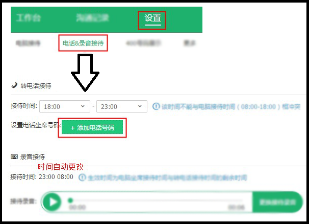 上面已经演示了电脑接待,这里只演示电话接待和录音接待哦!