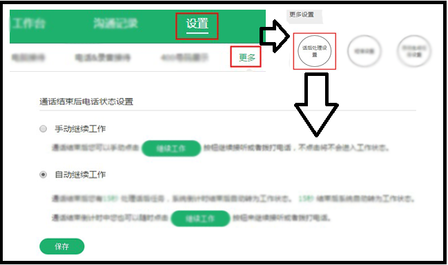 a.  接完电话后,手动点【继续工作】,下一通电话进线