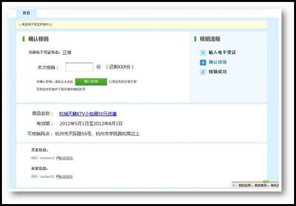 电子交易凭证的交易流程是怎样?与普通交易的区别? 大文 四月 16, 2016 卖家工具及服务 0 条评论 2264 围观 电子交易凭证的交易流程(如下所示)买家端区别是不用填收货地址,但需要填接收手机;卖家端,好比提供了一个自提业务: 1、选择需要购买的宝贝,点击立刻购买 2、点击立刻购买后进入购买页面 3、买家点击提交订单后页面显示: 4、购买成功后订单详情页面 5、买家付款(核销)查询页面 6、买家确认付款(核销)页面 7、买家点击确认核销(付款)成功后页面