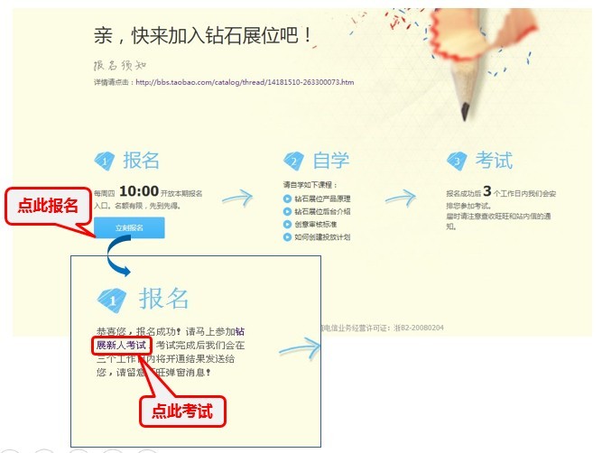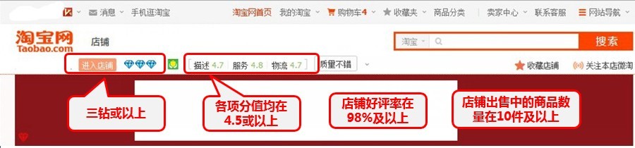 我是卖家,怎么推广我的店铺? 大文 四月 19, 2016 卖家工具及服务 0 条评论 1557 围观 淘宝直通车 钻石展位 淘宝客 淘宝直通车 第一步:确认准入条件 申请开通直通车账户需要符合以下两个基本条件:店铺两星级或以上;描述、服务、物流三项分值均在4.4或以上。 查看推广规范:请点击推广规范连接,查看并确认您要推广的宝贝所属类目是否符合准入条件。 第二步:充值开通 1.登录【淘宝首页】-【我是卖家】-【营销中心】-【我要推广】,点击”直通车” 2.同意协议 3.充值 第三步:开始推广 1.如何推广宝贝 2.直通车基础操作 钻石展位 第一步:确认准入条件 申请开通钻石展位账户需要符合以下四个基本条件。 查看推广规范:请点击推广规范连接,查看并确认您要推广的宝贝所属类目是否符合准入条件。 第二步:报名+考试+审核,路径:【淘宝首页】-【我是卖家】-【营销中心】-【我要推广】,选择”钻石展位” 第三步:开通+充值+推广 审核通过后,第二周的周一会收到权限开通的通知 通过卖家推广平台或者直接通过此链接登陆钻展后台,输入用户名和密码 温馨提醒:请根据视频指导了解基础操作步骤 淘宝客 第一步:联盟入口:【淘宝首页】-【我是卖家】-【营销中心】-【我要推广】,点击”淘宝客推广” 第二步:确认协议 第三步:新增主推商品 第四步:设置佣金