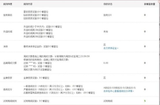 5)卖家信用得分小于4分(达不到1心),没有基础奖励的橱窗位,也没有成交基线奖励的橱窗位;