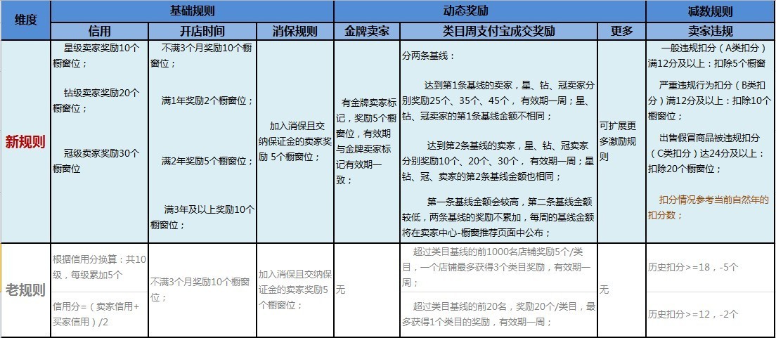 1)新规则剔除了买家信用的影响,会导致部分卖家获得的橱窗位有所减少;