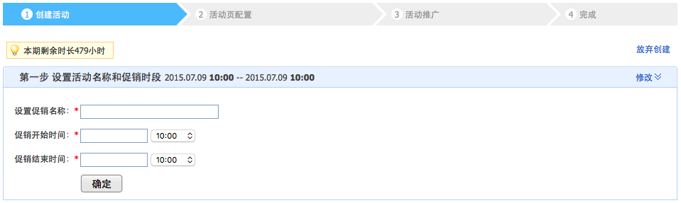 活动时间超出所在周期剩余时间是指一个月周期内您可以创建的限时打折活动时间不足。