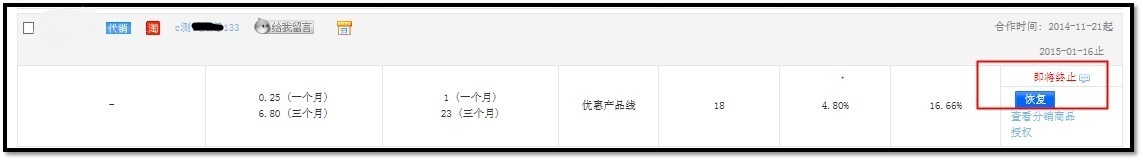 在“即将终止”的状态下,您还可以撤回此条终止,撤回后,合作状态再次恢复为正常