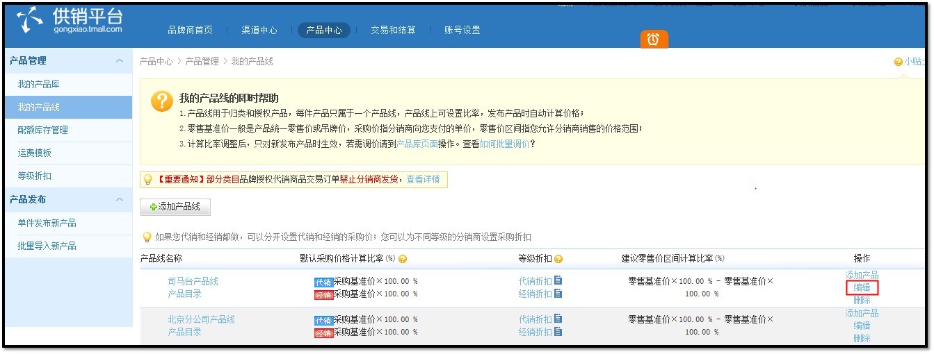 第一步:点击编辑产品线