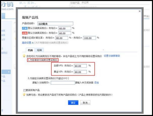 供应商在产品线上设置各等级折扣操作