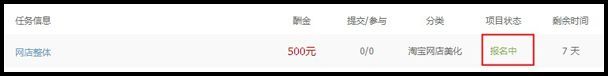 什么是报名期? 大文 四月 24, 2016 卖家平台 0 条评论 1213 围观 任务成功发布后到截稿日期前,设计师可对任务进行报名和方案提交,称为报名期。 报名期,需求方不可提前进行选稿。 报名期,任务状态显示如下图所示: