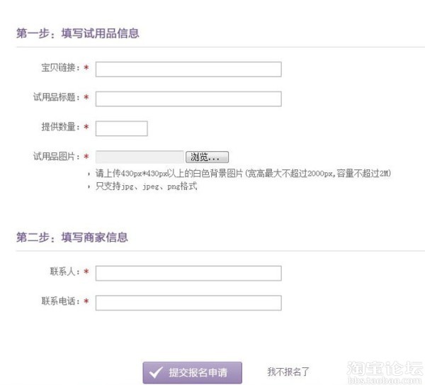 最终名单出来之后,商家需要在试用论坛的《商家发货单公布》贴子公布试用发货名单等信息,标题格式为:【产品名】发货单查询,内容请以会员旺旺ID+快递+发货单号的形式公布,请不要公开会员的真实信息,发货单公布地址: