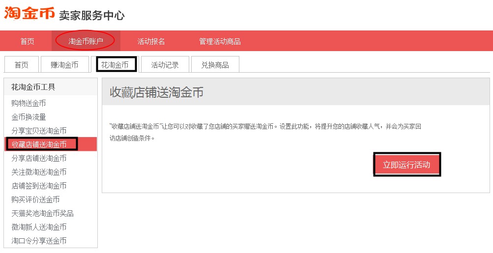收藏店铺送5个淘金币,怎么设置? 大文 四月 25, 2016 卖家活动 0 条评论 1237 围观 亲,收藏店铺送淘金币,进入【淘金币】点击右上角【卖家中心】-【淘金币账户】-【花淘金币】-【收藏店铺送金币】