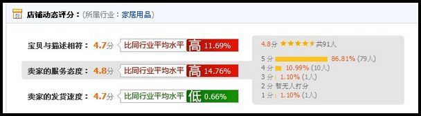 计算方法:每项店铺评分取连续6个月内买家给与该项评分的总和/连续6个月内买家给与该项评分的次数。