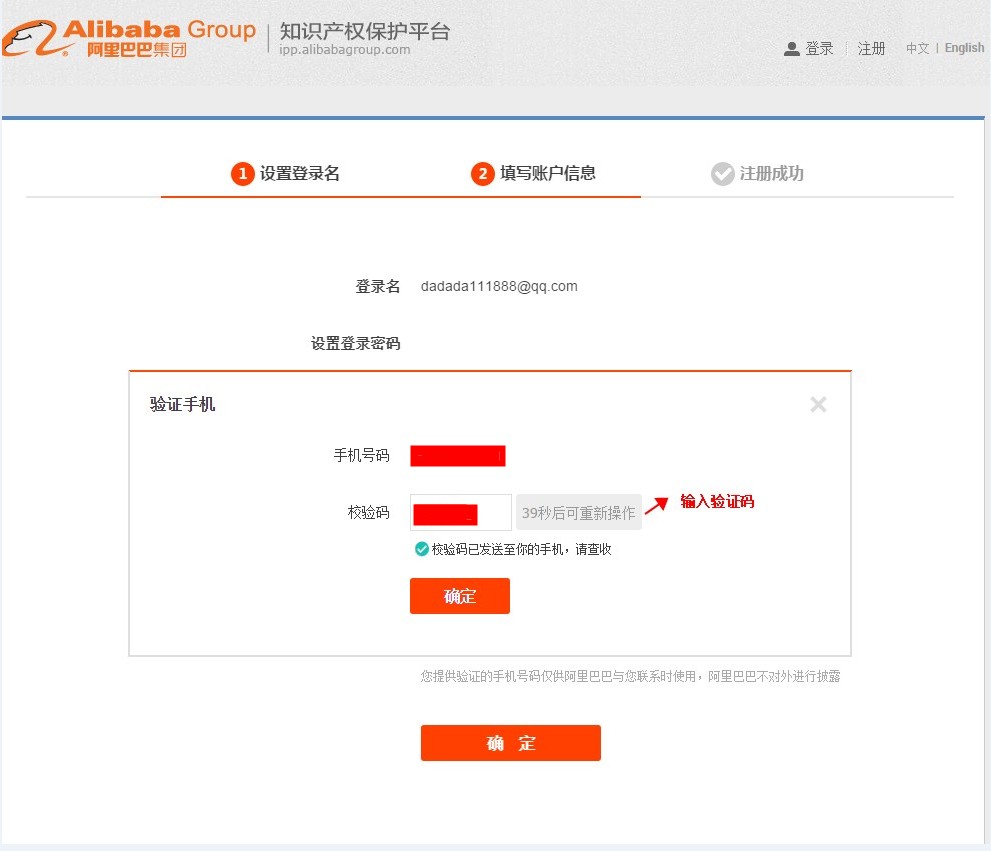 第四步:点击”确认”之后等待手机验证码短信,输入验证码点击”确定”